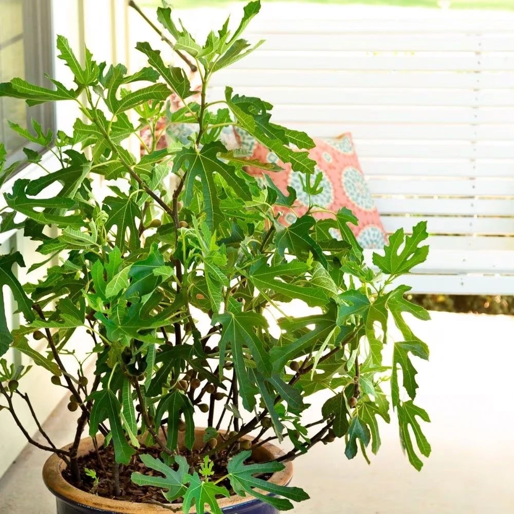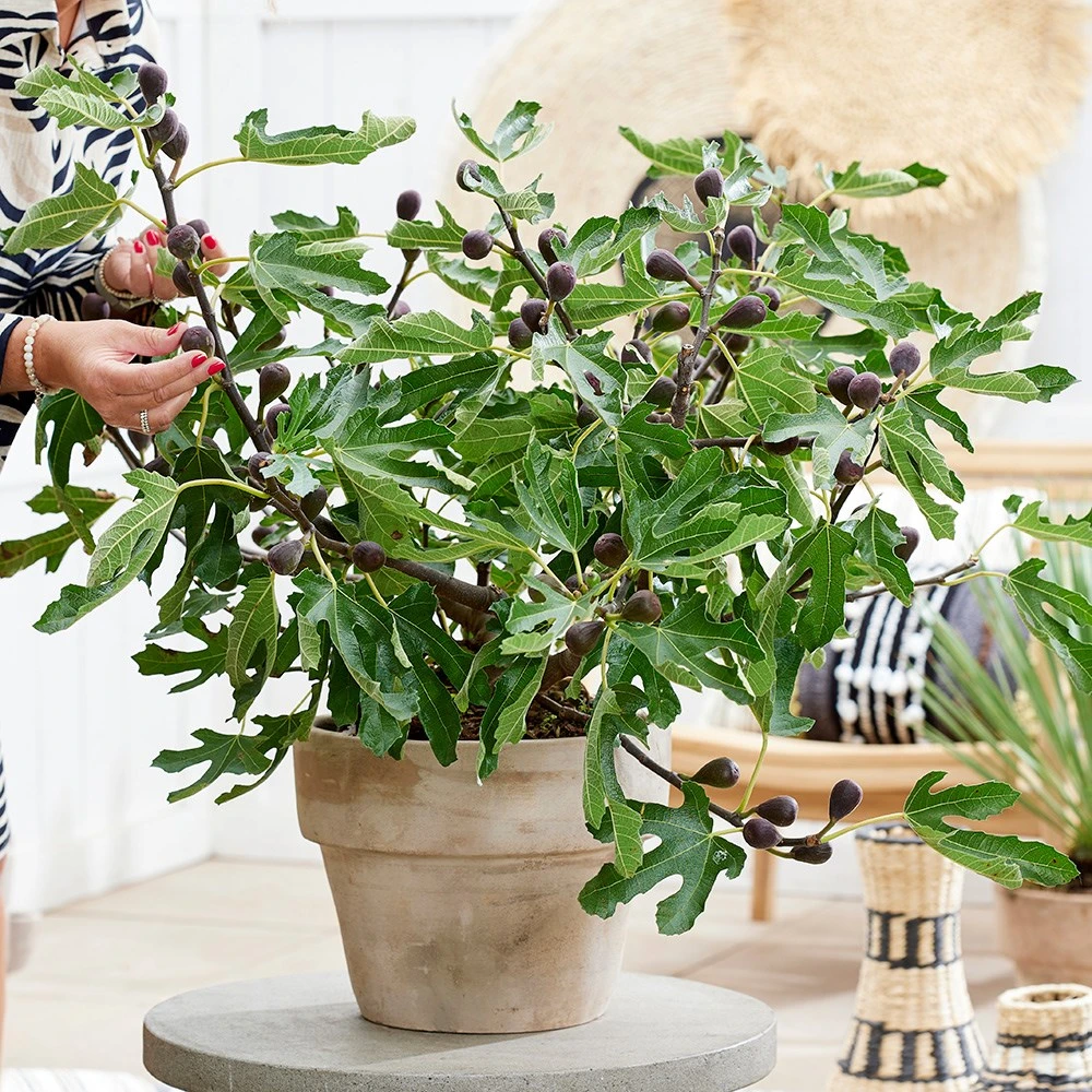 A naturally compact fig, bred specifically for its dwarfing habit, ‘Miss Figgy’ is ideal for smaller spaces. Its foliage looks just the same as the larger species, but it forms on smaller, well-balanced plants, which are perfect for the patio. The fruit it can produce (usually after a long, hot summer), is delicious baked with maple syrup and and served with a dollop of mascarpone cheese – washed down with an espresso or liqueur…yum!